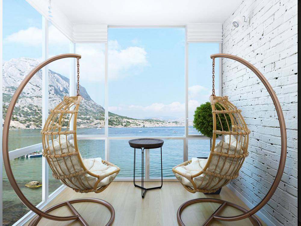 Chiếc ghế với thiết kế độc đáo giúp tận hưởng khung cảnh biển khơi bên ngoài căn hộ tuyệt vời hơn.